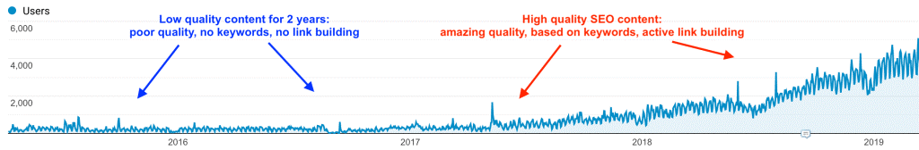 In this section I will try to give an overview of a SEO strategy, which worked for me and brought some significant results – 100K+ monthly sessions & 150K+ pageviews.
